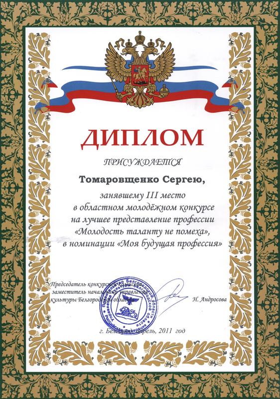 Поздравляем студента группы ЧС-31 Томаровщенко Сергея, занявшего 3-е место в областном молодежном конкурсе на лучшее представление профессии «Молодость таланту не помеха» в номинации «Моя будущая профессия».